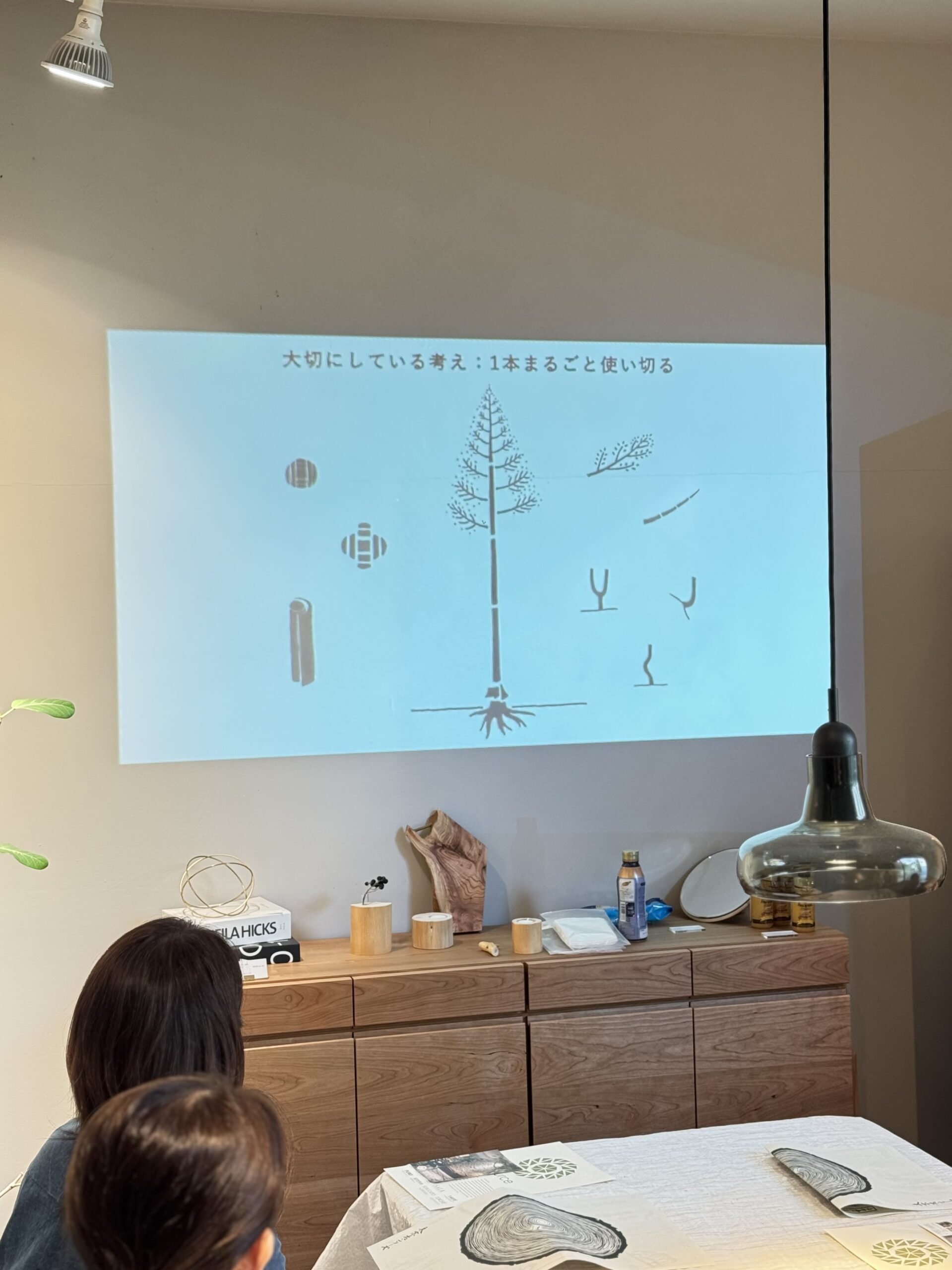 職人は原木の状態から、節や木目を読み取り、どこに使えば