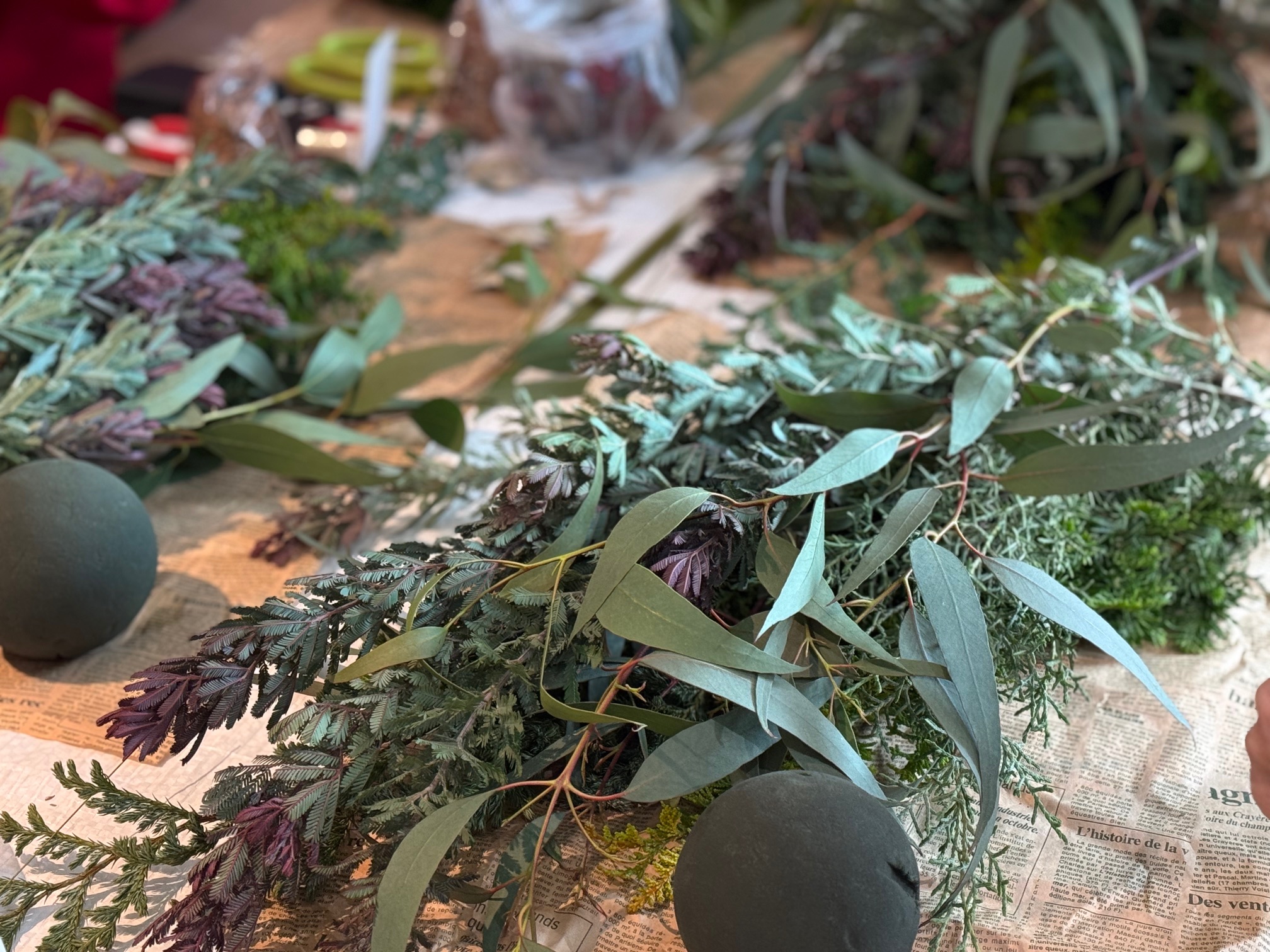 そのあとはたっぷり用意してくださった針葉樹のカット。始まる前から店内に爽やかな香りが広がっておりましたが、カットすることでさらに香り豊かな空間となりました。落ち着きのある香りで心身もリフレッシュしますね。