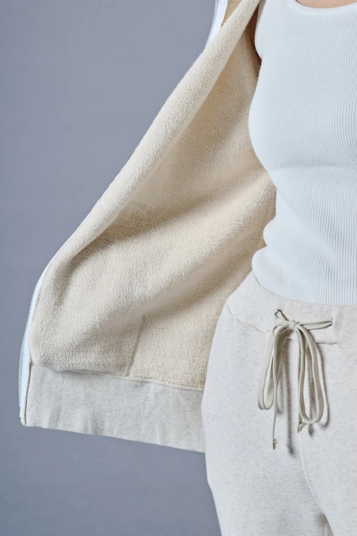 軽快な着心地と、守られているようなあたたかさ。ご自宅の洗濯機でお手入れできて、何度洗っても縮まず、型崩れもしません。ベーシックなのでどんな服にも合わせやすく、スタッフもユニフォームのようにほぼ毎日着用させていただいております。やさしく包み込まれるような心地よさをぜひご体感ください。
