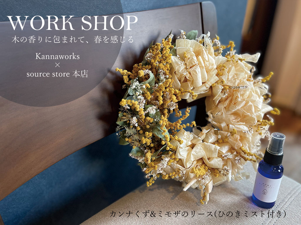 本店 「カンナくず&ミモザリース(ひのきミスト付き)」ワークショップのご案内