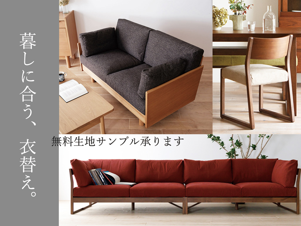 sourceのチェアやソファはフルカバーリング仕様となっており、ファブリック、PVC(合成皮革)、本革を豊富に取り揃えております。 お使いいただく方が、お好みや季節、用途に合わせてオーダーメイド感覚でお選びいただけます。 カバーを替えるだけで手軽にお部屋の印象を変えられるのはもちろん、洗えるタイプの生地ならいつでも清潔にお過ごしいただけます。